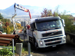 Camion 4 x 4 basculant 3 côtés avec remorque surbaissée